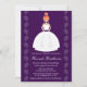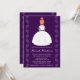 Customise and personalise this pretty bridal shower invitation with a lightly textured plum background and a pretty, redhead bride in a strapless wedding gown with a plum sash and pretty flourish pattern on her skirt. She wears a flower in her hair and accessorises with a lovely pair of tear drop shaped dangle earrings. Illustration and artwork © Chrissy H. Studios, LLC. All Rights Reserved.
