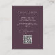 Invite your guests to easily respond with this sophisticated plum text-based QR code card. The rich plum colour adds a touch of romance and elegance to your invitations. This modern design provides a simple and direct way for guests to access your wedding website's RSVP form. Simply scan the QR code for instant access and streamline your wedding planning.