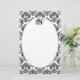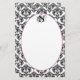 Black and White Vintage Damask Purple Plum Borders Stationery