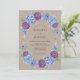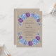 Rich plum and cornflower blue watercolor roses and hydrangeas form a lush arrangement on a warm taupe background. Silver-green eucalyptus foliage adds a natural touch to the botanical design. This artwork creates a romantic and earthy atmosphere for an outdoor or nature-inspired event. The colour palette blends deep jewel tones with soft neutrals.