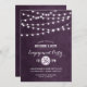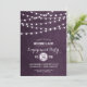 Chic modern summer wedding engagement party invitation design with simple elegant glowing string lights hanging across the top and a classy mix of modern and calligraphy script fonts on a printed faux watercolor texture background. A simple and stylish preppy design, perfect for summer! Click the CUSTOMIZE IT button to customise fonts, move text around and create your own unique one-of-a-kind invitation design.