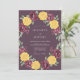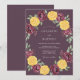 This design features a rich plum backdrop decorated with a lush arrangement of yellow and burgundy roses. Accented with sage green foliage and small crimson berries, the floral motif creates a sophisticated look for a seasonal event. The moody colour palette evokes a romantic and cosy atmosphere, perfect for a late-year union.