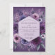 An enchanting floral arrangement blossoms against a deep purple background, creating a moody and romantic atmosphere. This elegant design features a rich palette of plum, amethyst, and dusty blue. Painterly roses and anemones are accented by delicate white blossoms and dark foliage, composing a beautifully opulent botanical display for your nuptials.