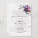 Design features a printed coloured with floral element in shades of plum and violet over eucalyptus leaves greenery and peony blooms on a purple watercolor background. Great for your wedding celebrations!