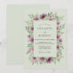 This design features a soft sage green palette adorned with a lush arrangement of delicate purple watercolor poppies and green foliage. These botanical elements create a romantic and airy atmosphere, perfect for a springtime or summer event. Deep plum tones contrast beautifully against the pale background, offering a vintage-inspired aesthetic for your special day.