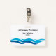 Simple yet modern plumber business employee work badges with colourful blue water wave graphic to represent plumbing work and space you can add your company name and professional name by replacing the text templates with your own names. Designed for a plumber fleet, contractor, or independent Plumber.