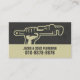 This plumber plumbing home repairs business card features a retro image of hand holding pipe wrench. Perfect for plumber, plumbing, home repair, home remodeling, construction, contractor, services themes.