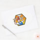 Cartoon illustration of a plumber worker repairman tradesman with adjustable monkey wrench repairing bathroom sink set inside hexagon.