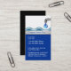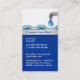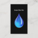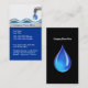Plumber business card template with water drops and leaky faucet in the background in a smart to side design with text templates you can customise online. Designed for a plumbing contractor, orwater filtration service.
