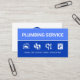 A blue shades layered cover is demarcated by a thin border line. Just below this is an array of plumbing icons alongside the contact details near the base of the card. Towards the top you have the business name "PLUMBING SERVICE" which you can change.