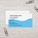 Modern Plumber service business card design with water coloured background and simple organised layout you can customise online. Designed for plumbing services for an independent contractor, full fleet of staff, or small business.