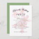 Pink plumeria "before the wedding" party with fun saying for the couple who is "ready to be done". Tropical pink flowers on stems are the background image for modern, black printed text. Leave spaces between the lines for same effect. Reverse is leaf green texture look pattern. Could be used as a rehearsal dinner invitation.