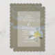This beach design features a yellow and white frangipani / plumeria flower on the sand. Yellow and white flower with beach background elegantly framed with a simple white opaque border background. This popular tropical Hawaiian flower is ideal for a destination beach wedding. Elegant beach wedding invitation design with modern elements. Matching wedding stationery items and other wedding invite formats are also available.