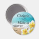 Pretty "Plumeria Starfish Beach" customisable round magnet favour. For questions & requests, email: glamprettyweddings.com/contact. Matching wedding invitations, save the dates, postage, round & square stickers, RSVP cards and more are available. "Plumeria Starfish Beach" original design by Cheryl Daniels © 2013.