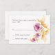 A coordinating reply card with three delicate, watercolor flowers in shades of plum and pink with golden leaves.