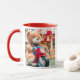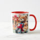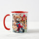 Plush bear on a red motorcycle toy. mug