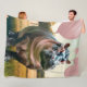Plush Blanket With Whimsical Hippo & Pink Balloons