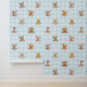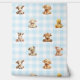 Plush stuffed farm animal toys on blue plaid for baby boy nursery wallpaper ©DecampStudios & OctopusArts