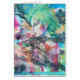 A black lacy scarf floats on the wind as the beautiful woman with green hair looks on in contemplation. An artistic and unique greeting card.