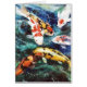 Brightly coloured fish swim through the waters of a garden pond, Nishikigoi (koi) are symbols of affection or love