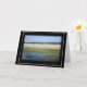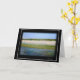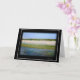 A blank card with original photo collage depicting a surreal scene of beach, snow capped Cascade mountains, sea and sky.