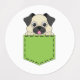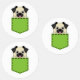 An illustration of a cute pug puppy peeping on the green pocket. This adorable pug dog design is a gift idea for dog lovers, fur mum, fur dad, pet lovers and animal lovers.