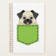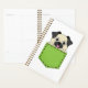 An illustration of a cute pug puppy peeping on the green pocket. This adorable pug dog design is a gift idea for dog lovers, fur mum, fur dad, pet lovers and animal lovers.