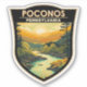 Pocono Mountains in a vector art style. The Pocono Mountains, or Poconos, encompass forested peaks, lakes and valleys in Pennsylvania.