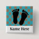 Podiatrist Name Buttons, Add your own name, customisable design with silhouette of feet on a polka dotted background.