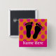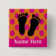 Podiatrist Name Buttons, Add your own name, customisable design with silhouette of feet on a polka dotted background.