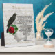 Gothic art collage features the last stanza of Edgar Allan Poe's "The Raven" along with a vintage raven and red rose illustrations on sheet music background.