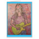 shows beautiful girl playin' live folk rock music from original pencil and watercolour sketch ! also with "poetic songstress" slogan
