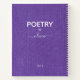 Custom writing journal features the words "POETRY by" in a modern white font and then your custom name in a white handwritten script over a printed purple linen texture photo background. Customisable "Vol. 1" for volume one is printed near the bottom. Personalise it with your custom text in the sidebar. Other inside paper styles and notebook options available in the sidebar.