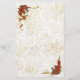 Elegant Bells with flowing ribbon and Poinsettia flowers for the Winter Bride and wedding. Bottom corner has matching Poinsettia and gold motif. Background is subtle gold and white pattern. This stationery is lovely and full of rich detail.