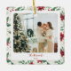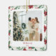 Celebrate your special holiday moments with this personalized poinsettia square photo ornament. Framed with a festive border of red and ivory poinsettias accented by soft green foliage, this ornament beautifully highlights your favorite family photo. The bottom space allows you to add your family name and year, making it a meaningful keepsake to enjoy year after year.