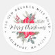 Designed to coordinated with the Red Poinsettia Botanical collection. A deep red poinsettia flowers is nestled in holly and berries and pine branches. Merry Christmas is written in an elegant script. Your address is written above and below the festive floral boquet.