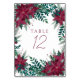 Poinsettia Burgundy and Teal Winter Floral Frame Table Number
