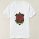 Elevate your holiday style with this majestic, full-color illustration! This highly detailed design features a symmetrical Heraldic Crest overflowing with intricate Poinsettia flowers and rich pine boughs. The blooms are rendered in luxurious deep scarlet red and velvety emerald green, accented throughout by fine metallic gold line work to create a classic, ornate holiday emblem.