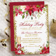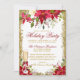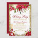 Poinsettia Floral Champagne Glass Holiday Party Invitation