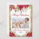 Elegant Watercolor Poinsettia Floral Family Photo Christmas Card - Gold Glitter Frame, Red Back