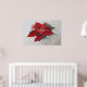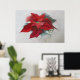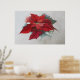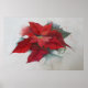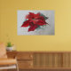 A striking seasonal digital oil painting of a Poinsettia flower in rich tones of red, burgundy, wine, peach pink, and green, perfect for Christmas or any other winter holiday.