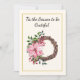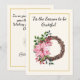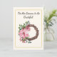 'Tis the Season to be Grateful is in a modern script font. A beautiful watercolor pink poinsettia with green holly leaves, red berries, white berries, and evergreen sprigs placed on an intertwined wreath, decorates the front of this charming 5"x7" flat holiday thank you card. The background is a “floral white” with a minimal gold border. A script greeting, matching faded poinsettia motif and handwritten name appear on the reverse side. Easily change, add-to or remove text to make it yours using the Template provided. Your choice of other sizes, paper types and envelope.