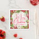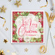 Personalised paper napkins feature modern, elegant winter flowers and a pink poinsettia with Merry Christmas and your name in chic lettering. MATCHING items in our store.