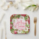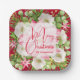 Personalised square paper plates feature modern, elegant winter flowers and a pink poinsettia with Merry Christmas and your name in chic lettering. MATCHING items in our store.