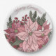 Pretty pink illustrated Merry Christmas plate featuring pink poinsettia flowers.