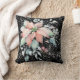 Poinsettia Snow scene, leaves, berries, corsage, 2 sided, two sided throw pillow with a black background - The soft watercolor winter scene with poinsettias, leaves and a blustery snowy background is so dramatic on this black background. The one side has the watercolor poinsettia with berries and leaves and the other side has the blustery winter scene with red berries. Great for a winter birthday, Christmas, Hanukkah, or whatever the winter season may bring to you. Merry Christmas from Kristin 'n' Steve at KNS Gear, and thanks for shopping our Christmas Store!