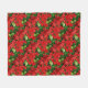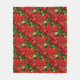 Fleece blanket in a festive Christmas-themed poinsettia pattern, with deep, rich red poinsettia flowers accompanied by lush, green holly leaves