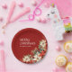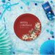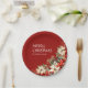 Merry Christmas and Family name Poinsettias round Paper plate.