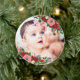 Floral ornament to which you can add your own photo in honour of your baby's first Christmas. It's decorated with floral arrangement in pink, red, and green consisting of poinsettias, roses, and mistletoe.