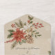 Capture the enchanting beauty of a winter wonderland with this exquisite All-in-One wedding invitation featuring a stunning design of red and ivory poinsettias with holly and pine boughs set against a snowy beige background. This invitation encapsulates the magic and romance of your special day. The All-in-One wedding invitations are both beautiful and practical by combining the wedding invitation with an easy to remove perforated RSVP postcard. They are also quick and easy to prepare for mailing. Simply address the invitation, fold the back flap and seal with the included clear stickers. Once your guests receive the pre-addressed invitation they simply tear off the perforated RSVP card and drop it in the mail. The addition of the QR code allows your guests to easily access your wedding website for information including reception details and dinner choices!